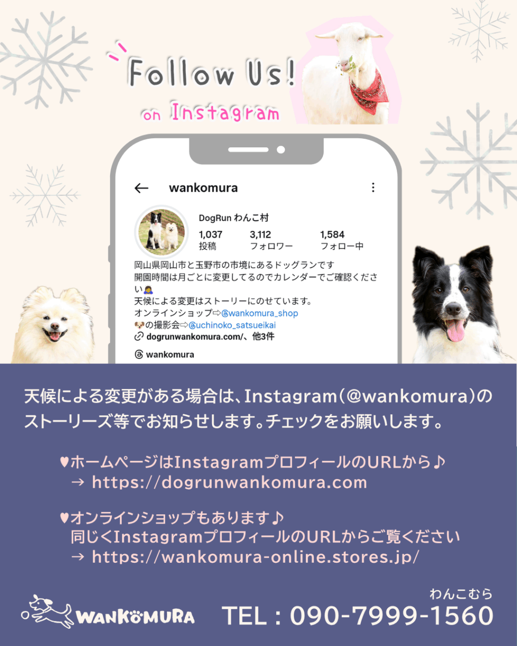 天候による変更がある場合は、Instagram @wankomura のストーリーズ等でお知らせしますので、チェック✅をお願い致します🙇♀️