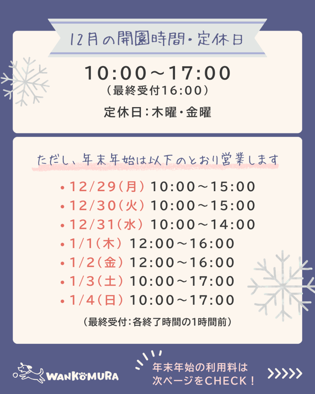 年末年始の開園時間・料金について